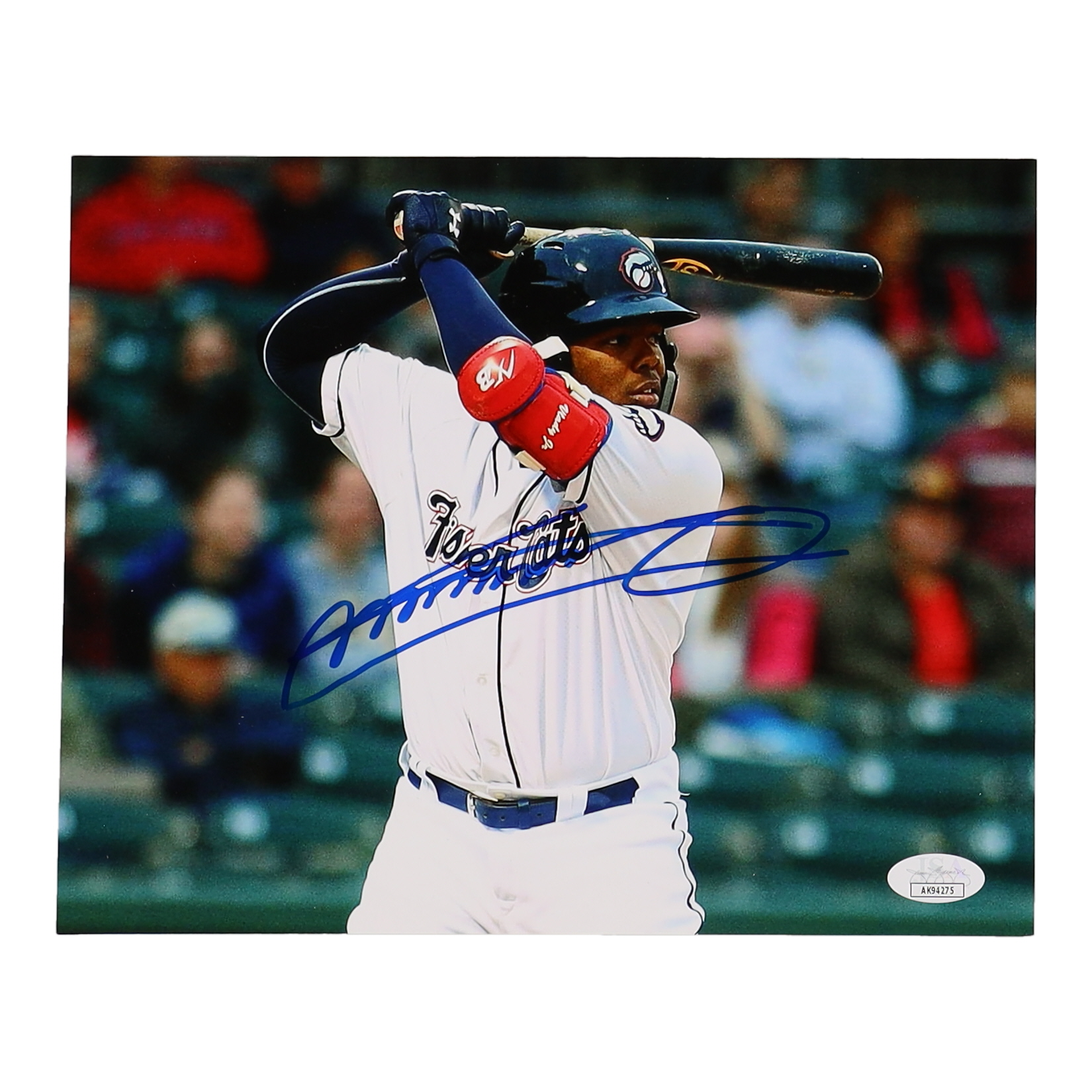 Photo measures 8" x 10" in size and has been hand-signed by Vladimir Guerrero Jr. (Toronto Blue Jays).