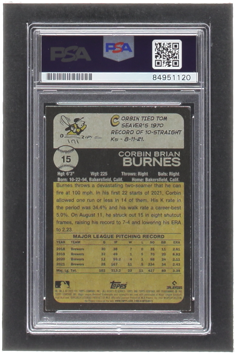 Corbin Burnes Signed 2022 Topps Heritage #15 (PSA)
