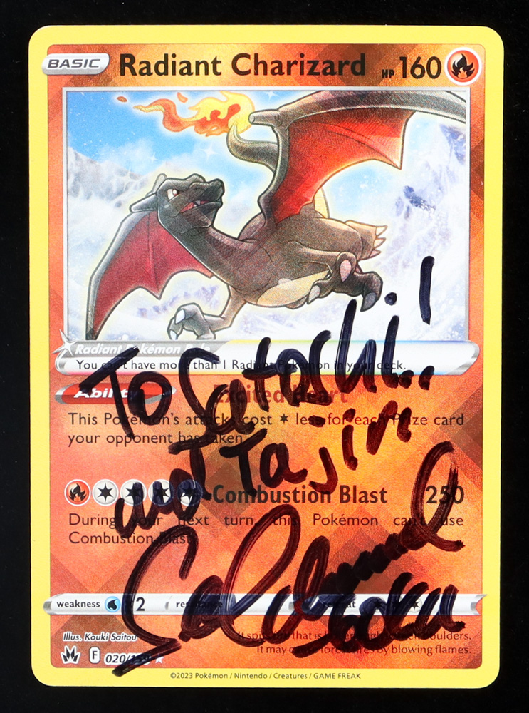 Sean Schemmel Signed Radiant Charizard 2023 Pokemon Sword and Shield Crown Zenith #20 Inscribed "Goku" (JSA)