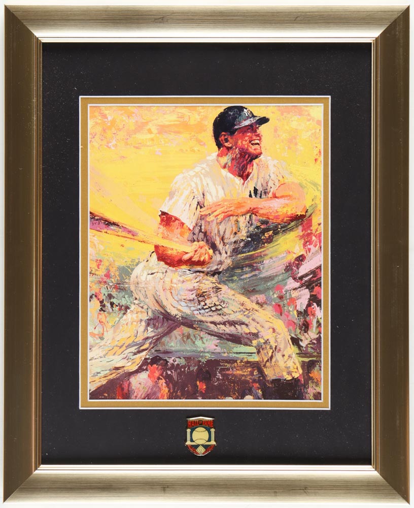 Custom frame measures 13" x 16" in size and features a "Mickey Mantle" print by Leroy Neiman (D. 2012). The display also includes a Hall of Fame Pin. Please note, the display is unsigned.