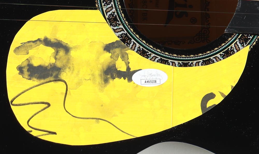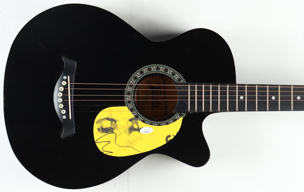 Guitar measures approximately 38" in length. Hand-signed on a CD cover that has been repurposed as a pick-guard by Ed Sheeran.