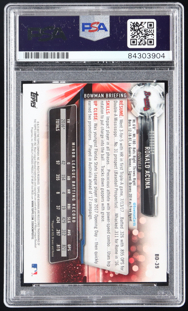 Ronald Acuna Jr. Signed 2017 Bowman Draft #BD39 (PSA)