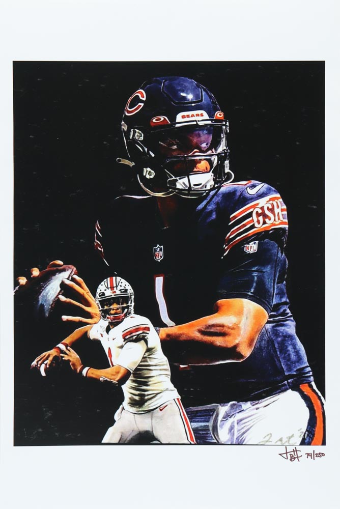 Justin Fields - Bears - Joshua Barton Signed LE 12x18 Lithograph #/250 (PA)