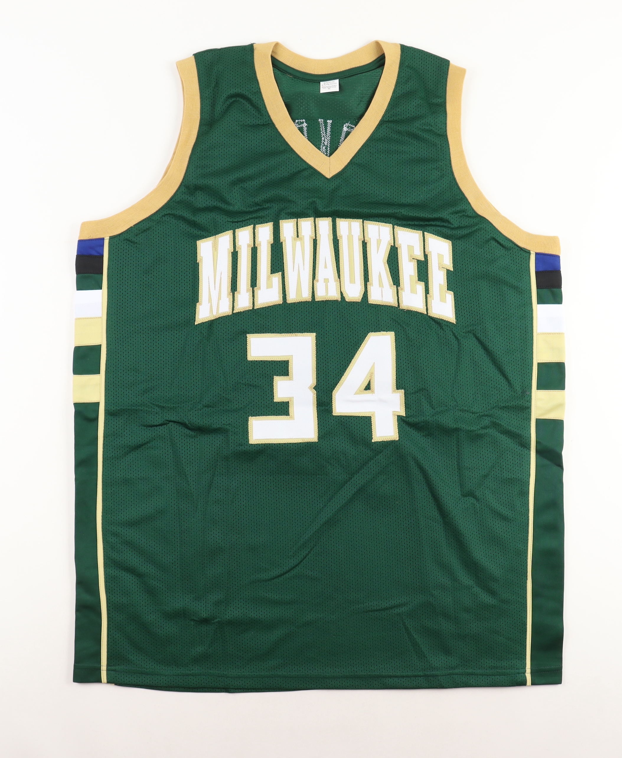 Custom jersey. Everything sewn on, size XL. Hand-signed by Giannis Antetokounmpo.