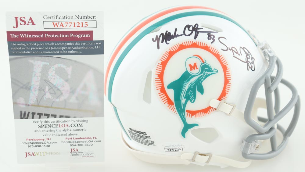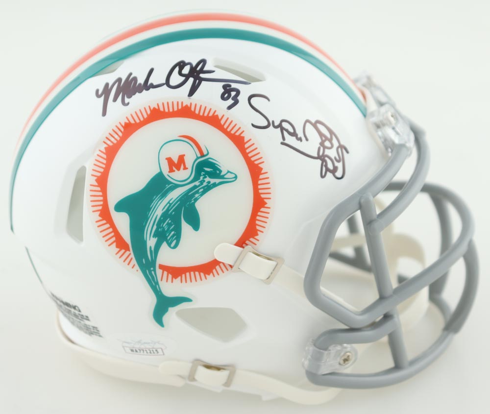 Riddell Miami Dolphins Speed mini helmet. Hand-signed by Mark Clayton and Mark Duper.