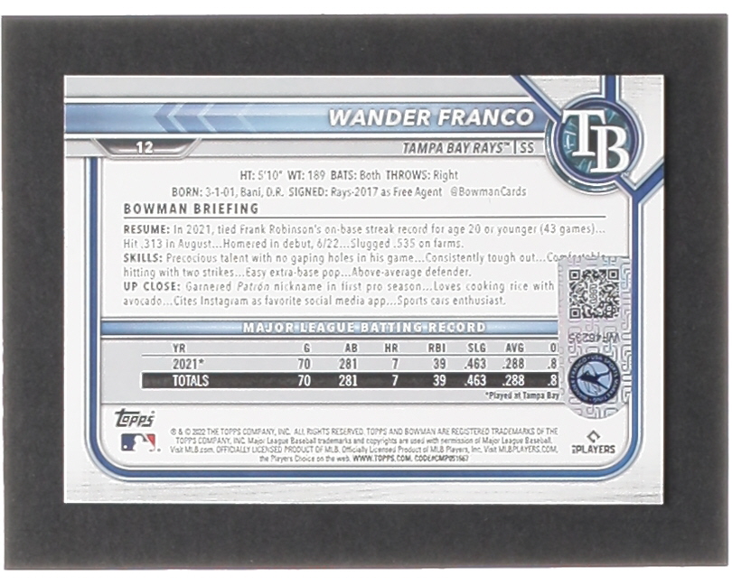 Wander Franco Signed 2022 Bowman #12 RC (USA SM)