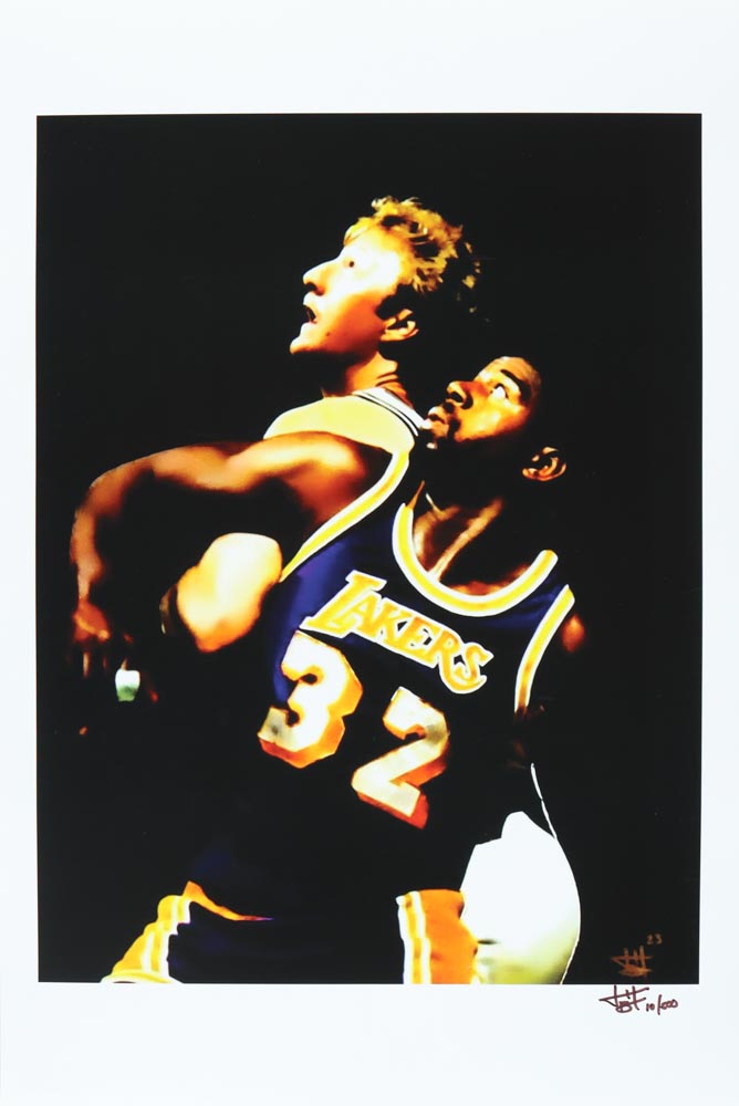 Magic Johnson & Larry Bird - Joshua Barton Signed LE 12x18 Lithograph #/500 (PA)