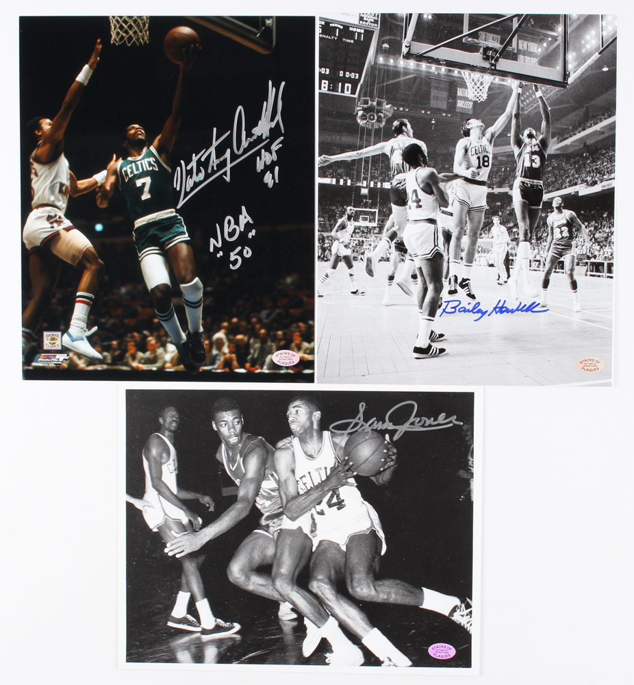Lot of (3) Boston Celtics Photos measuring 8" x 10" in size. Photos have been hand-signed by Sam Jones (Celtics HOF), Bailey Howell (Pistons HOF) & Nate "Tiny" Archibald (Kings HOF).