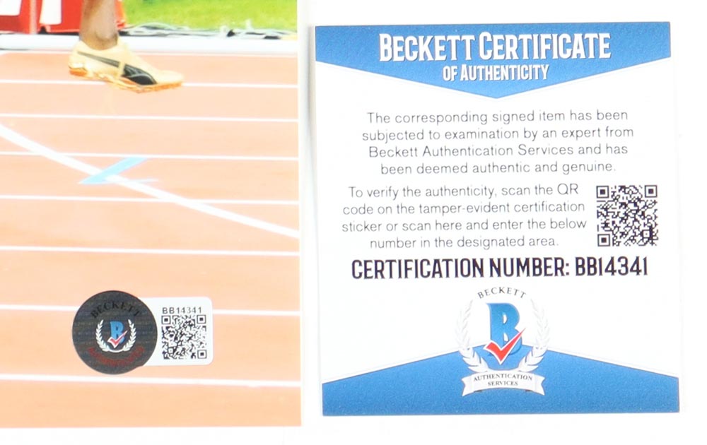 Photo measures 8" x 10" in size and has been hand-signed by Usain Bolt.