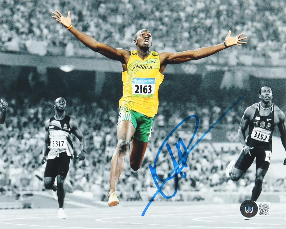 Photo measures 8" x 10" in size and has been hand-signed by Usain Bolt.