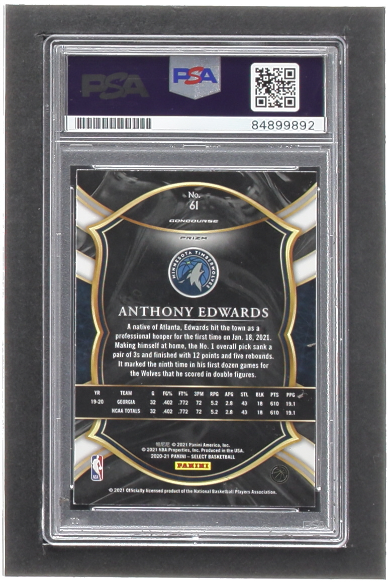 Anthony Edwards Signed 2020-21 Select Prizms Red White Orange Shimmer #61 RC (PSA)