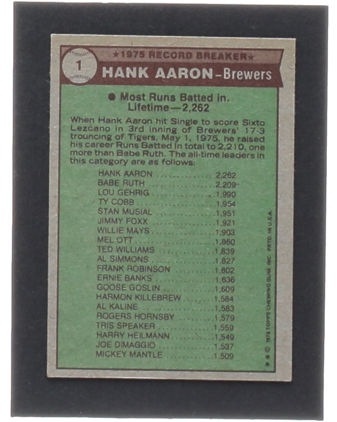 Hank Aaron 1976 Topps #1 RB