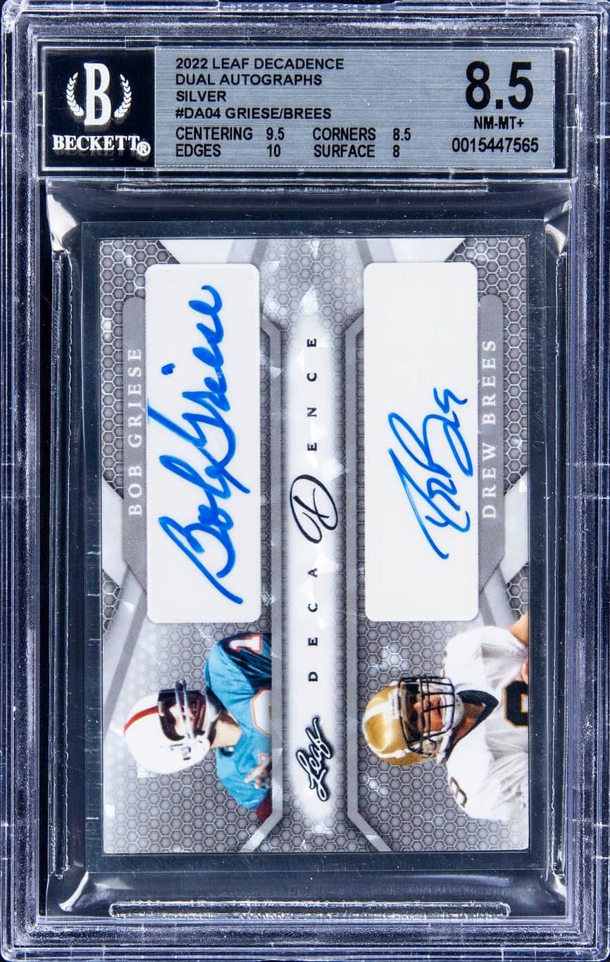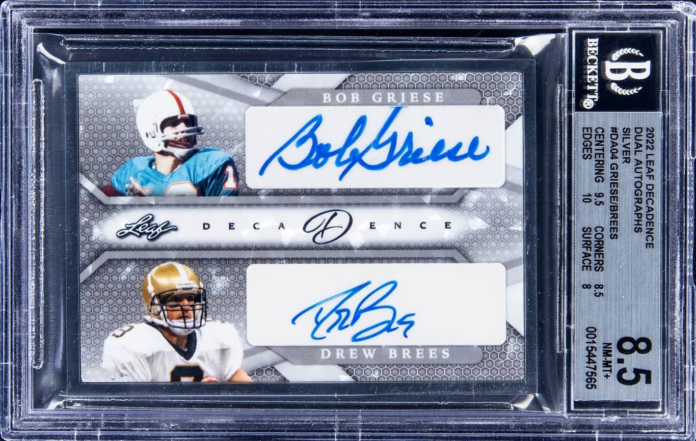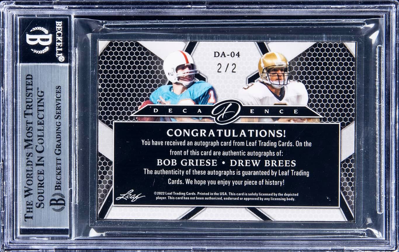 Bob Griese & Drew Brees Signed 2022 Leaf Decadence Silver #2/2 (BAS 8.5)