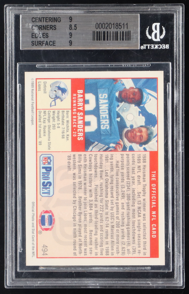 Barry Sanders 1989 Pro Set #494 RC (BGS 9)