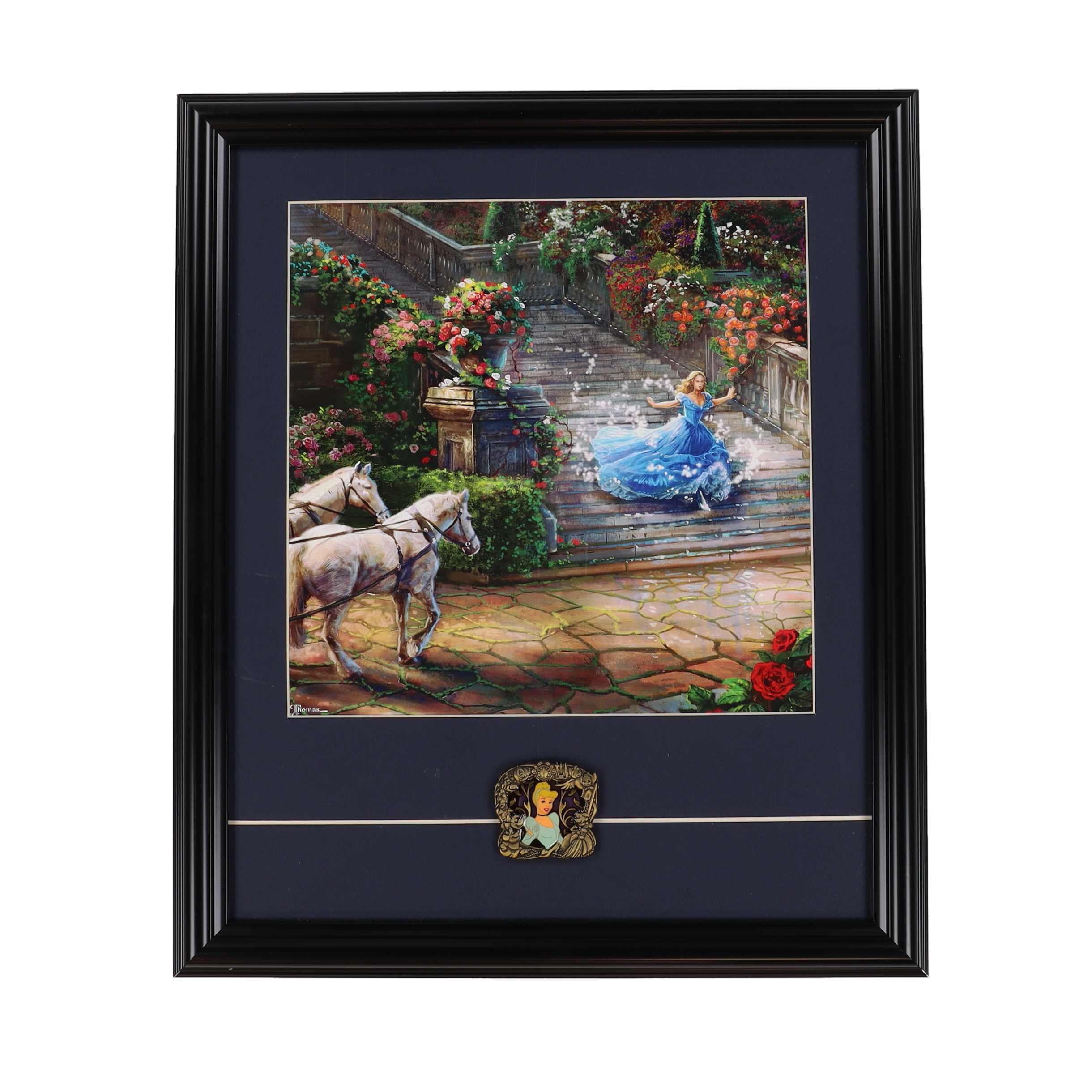 Thomas Kinkade "Cinderella" Custom Framed Print Display with Cinderella Pin