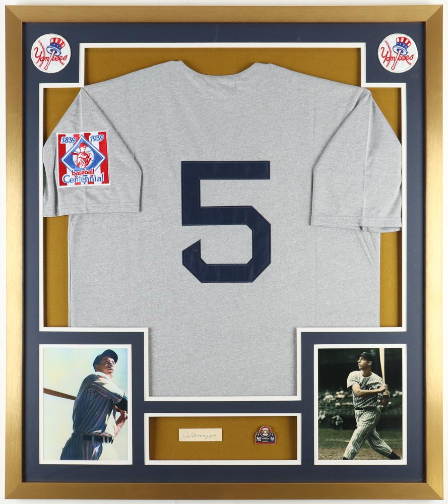 Joe DiMaggio Signed Yankees Custom Framed Cut Display with Jersey & 1936 World Series Pin (PSA)