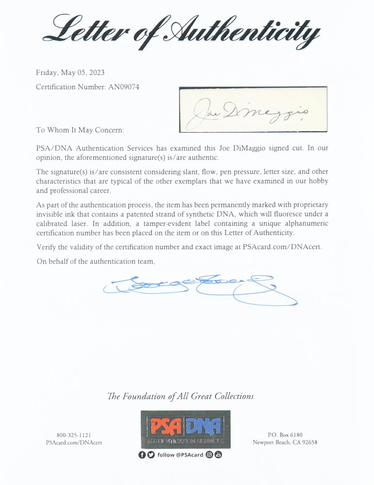 The lot / autograph(s) includes an official PSA/DNA hologram and matching LOA for authenticity purposes.