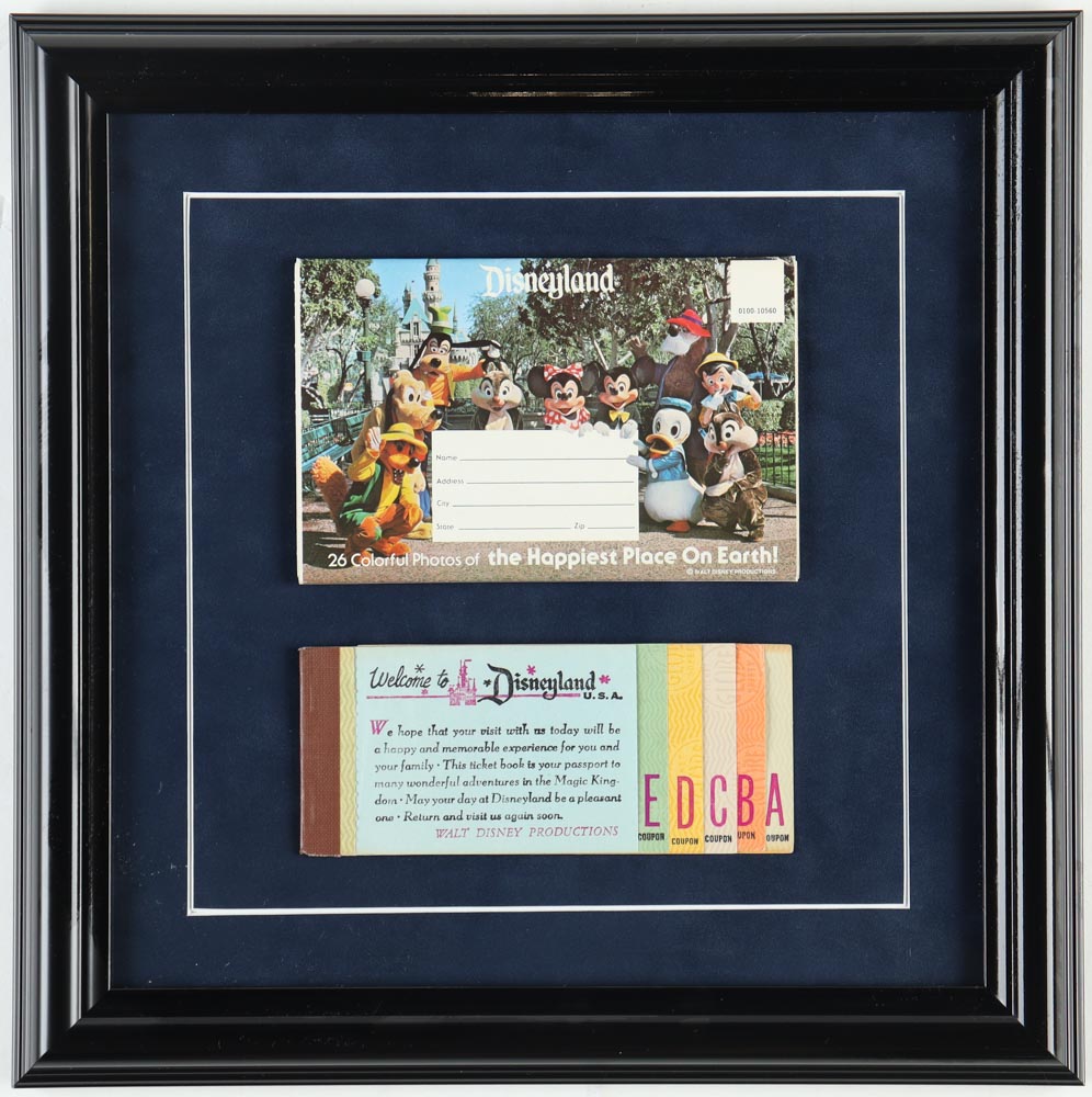 Disney World Custom Framed Souvenir Booklet with Vintage Disneyland A to E Ticket Book