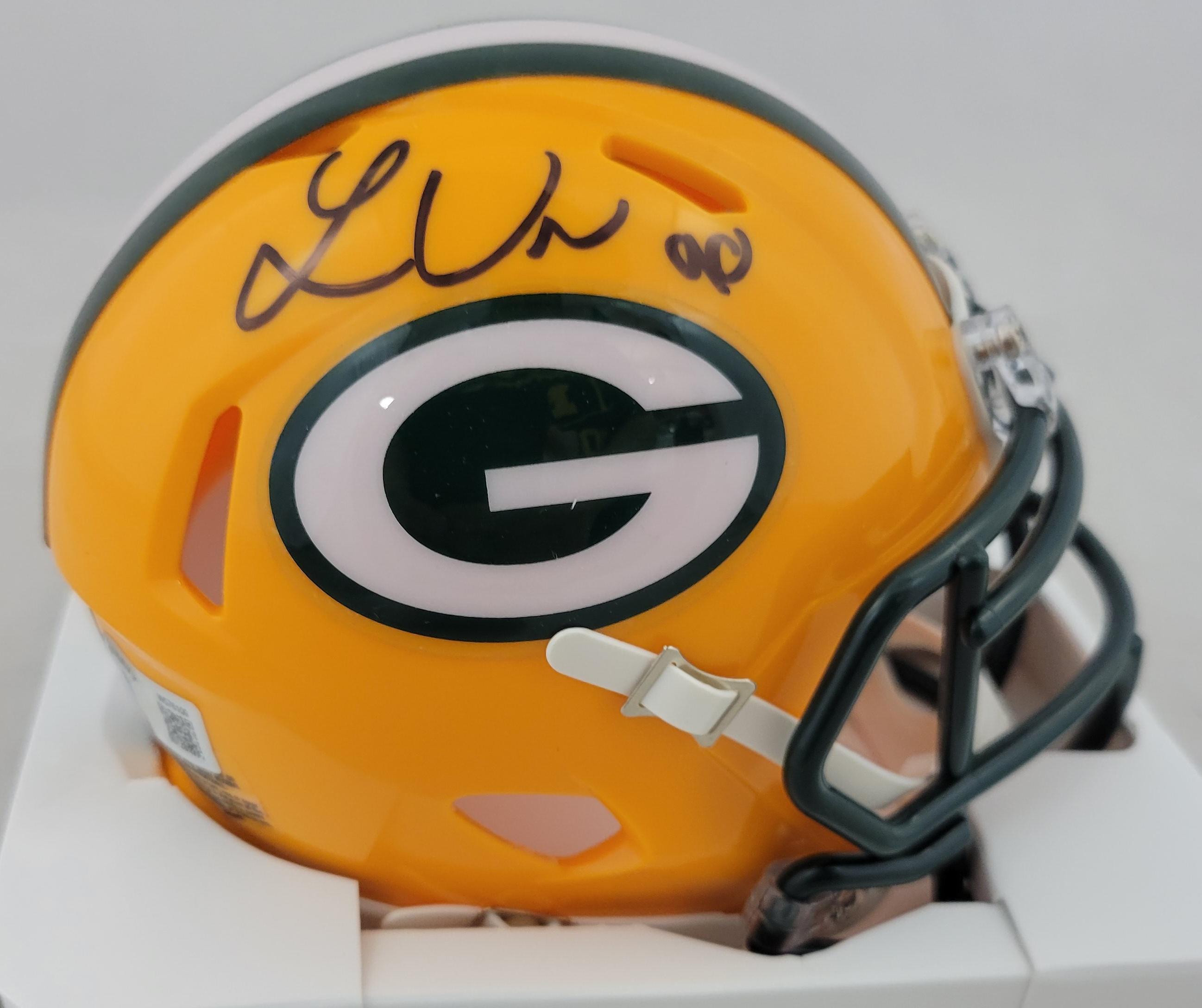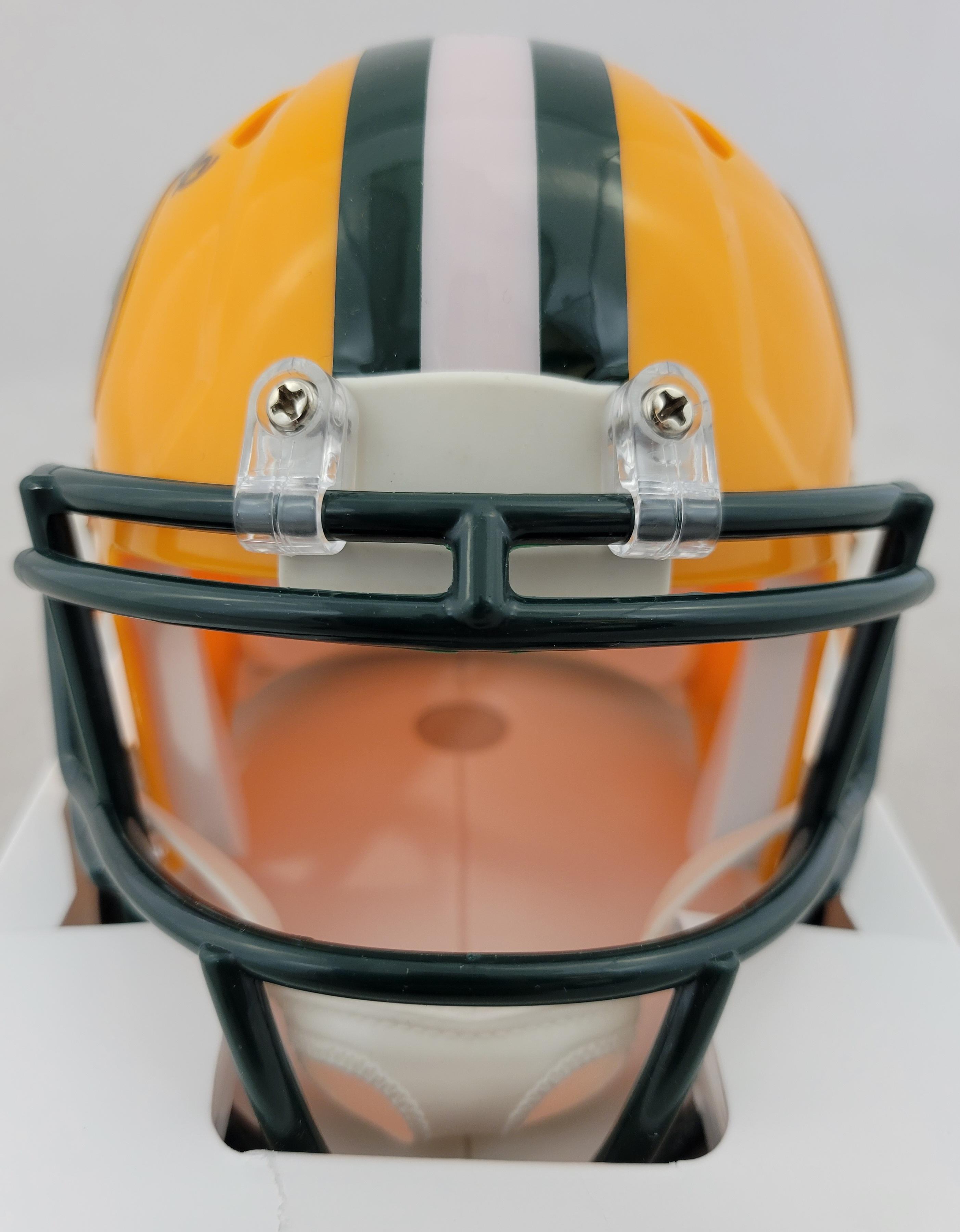 Riddell Green Bay Packers Speed Mini Helmet. Hand-signed by Lukas Van Ness.