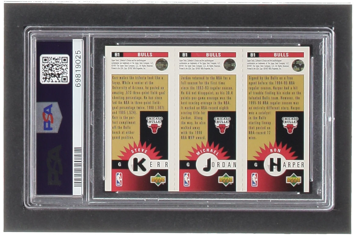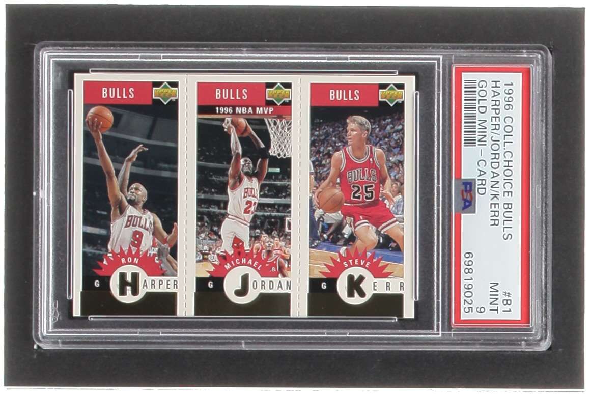 Ron Harper / Michael Jordan / Steve Kerr 1996-97 Collector's Choice Chicago Bulls Gold #B1 (PSA 9)