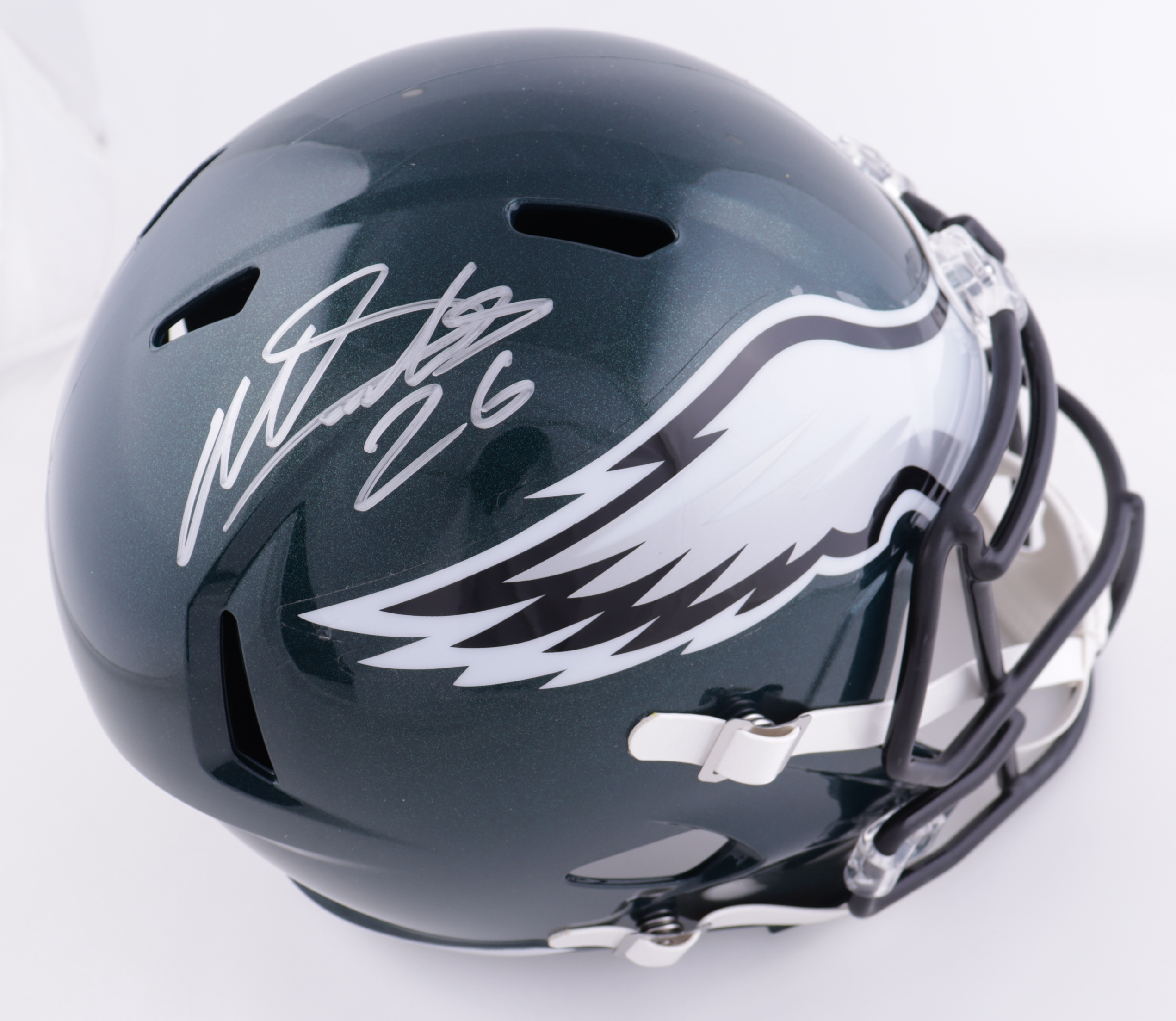 Riddell Philadelphia Eagles full-size replica Speed helmet. Hand-signed by Miles Sanders.