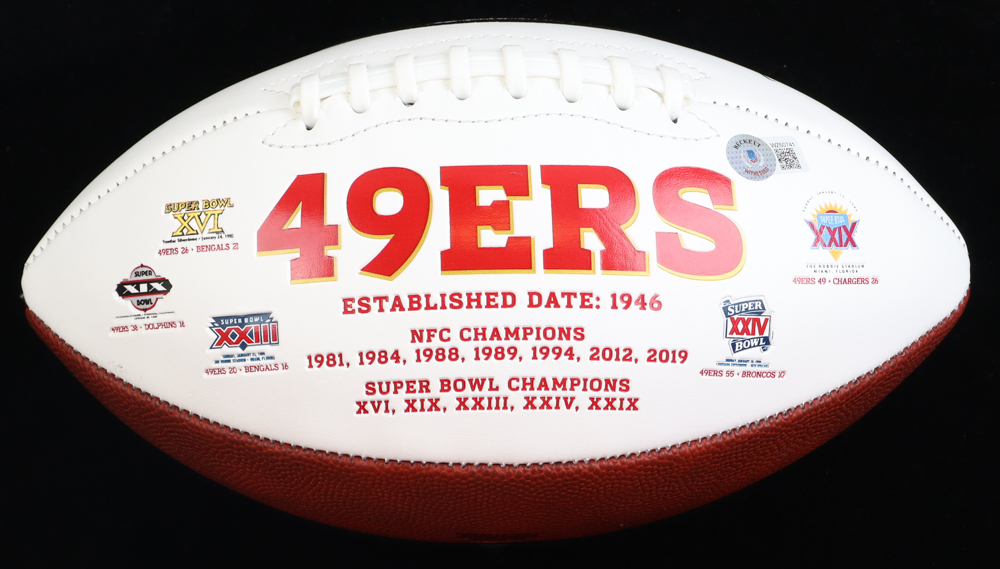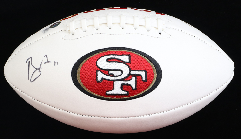 San Francisco 49ers logo full-size football. Hand-signed by Brandon Aiyuk.