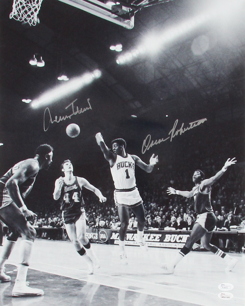 Oscar Robertson & Jerry West Lakers vs. Bucks Signed 16x20 Photo (JSA COA)