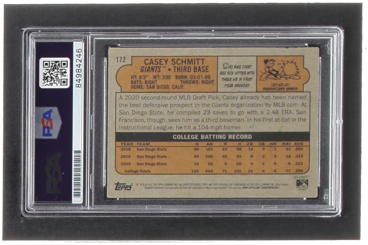 Casey Schmitt Signed 2021 Topps Heritage Minors #172 (PSA)