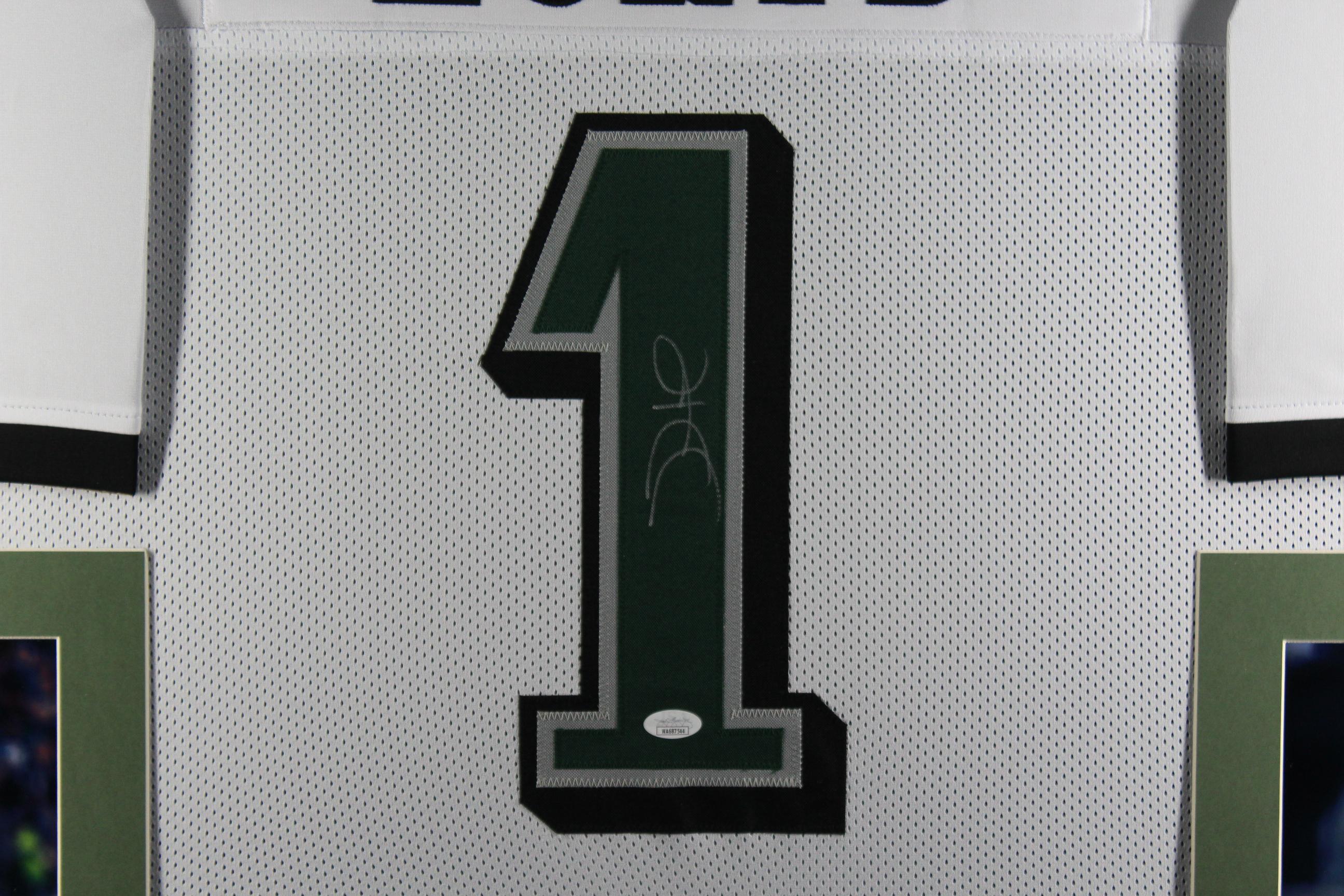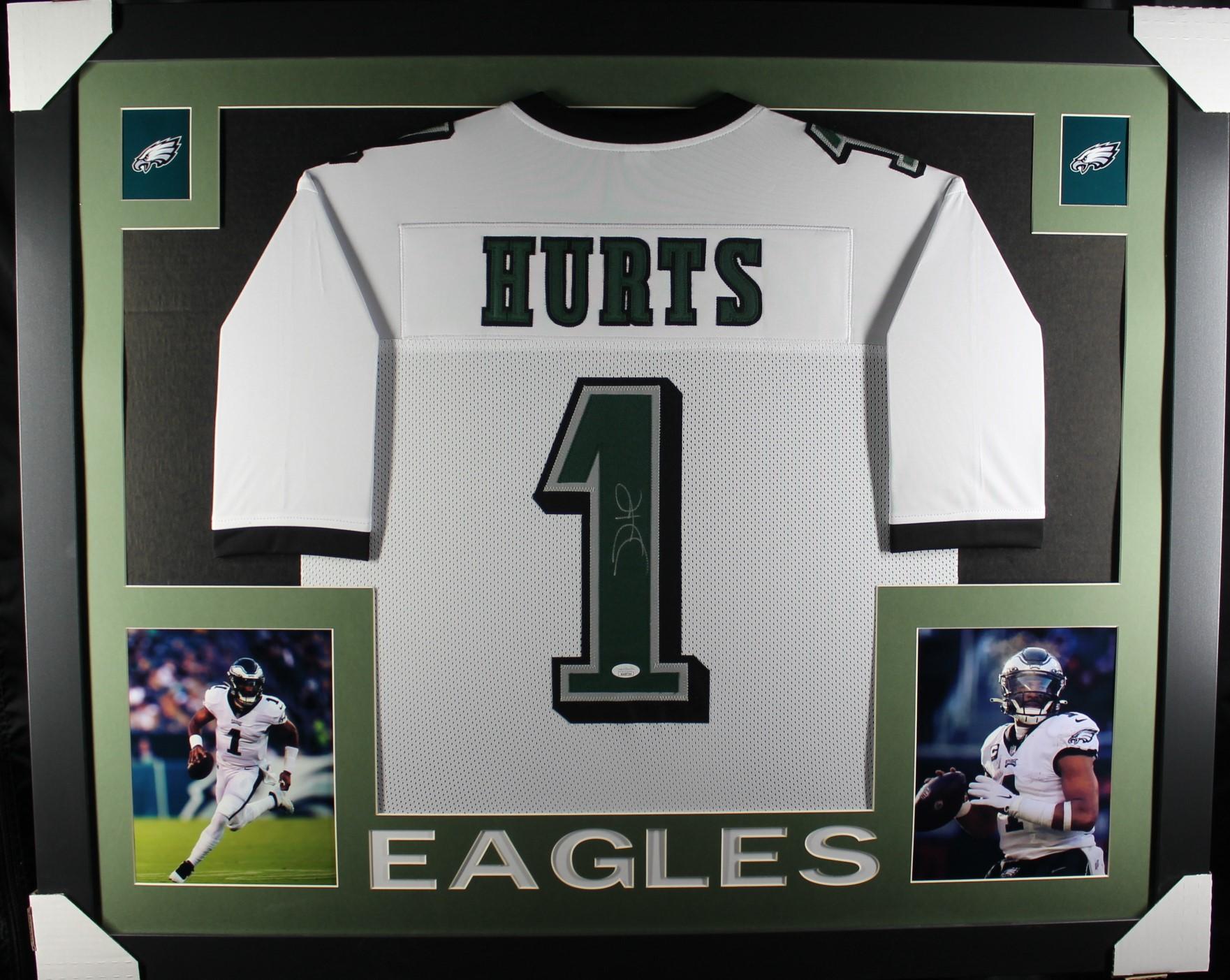 Custom frame measures 35" x 43" in size and features a jersey hand-signed by Jalen Hurts.
