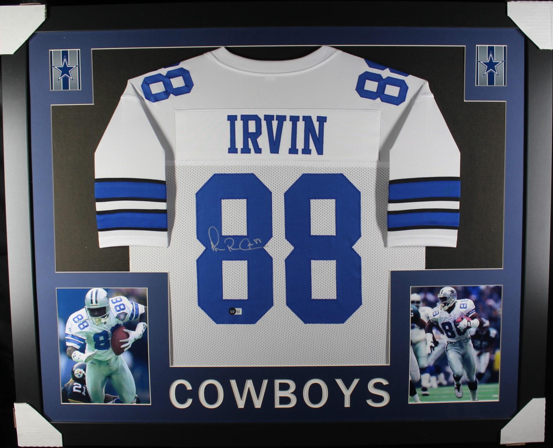 Custom frame measures 35" x 43" in size and features a jersey hand-signed by Michael Irvin (HOF).