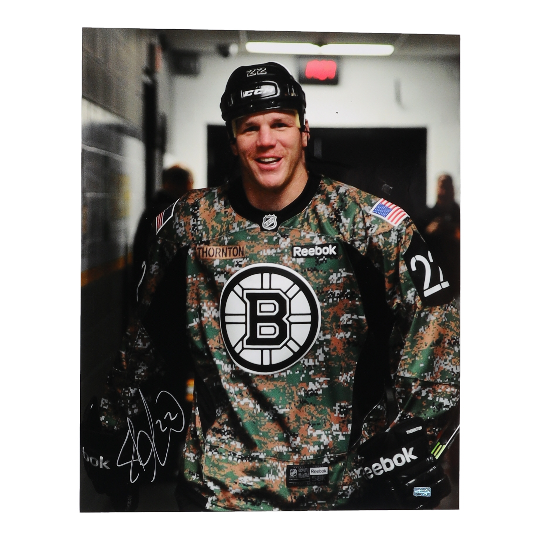 Photo measures 16" x 20" in size and has been hand-signed by Shawn Thornton (Boston Bruins).