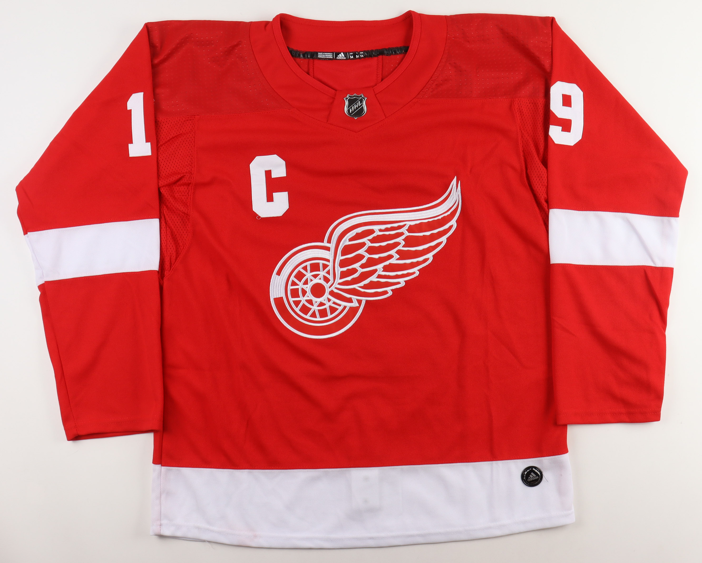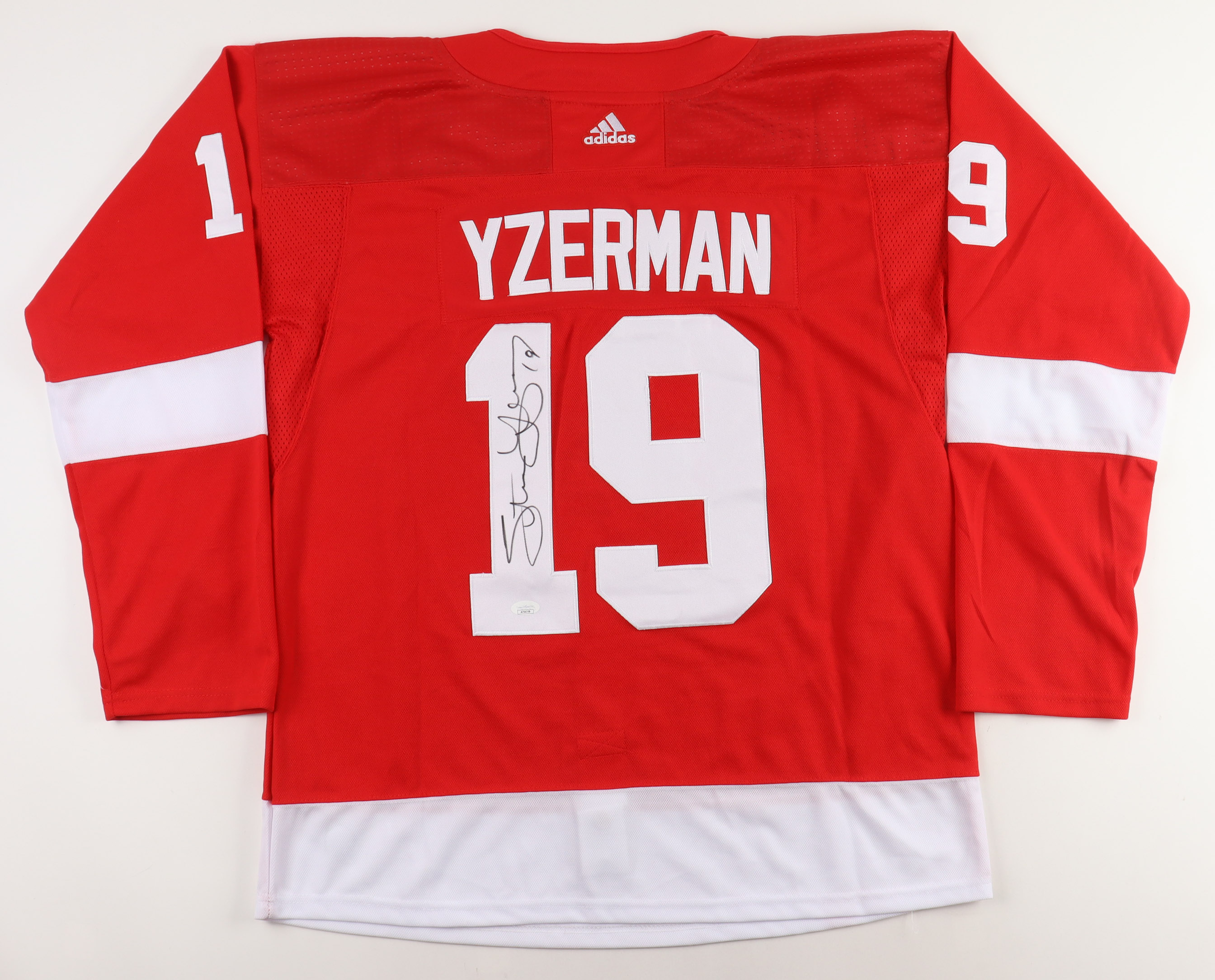 Jersey with everything sewn on, size XL. Hand-signed by Steve Yzerman (HOF).