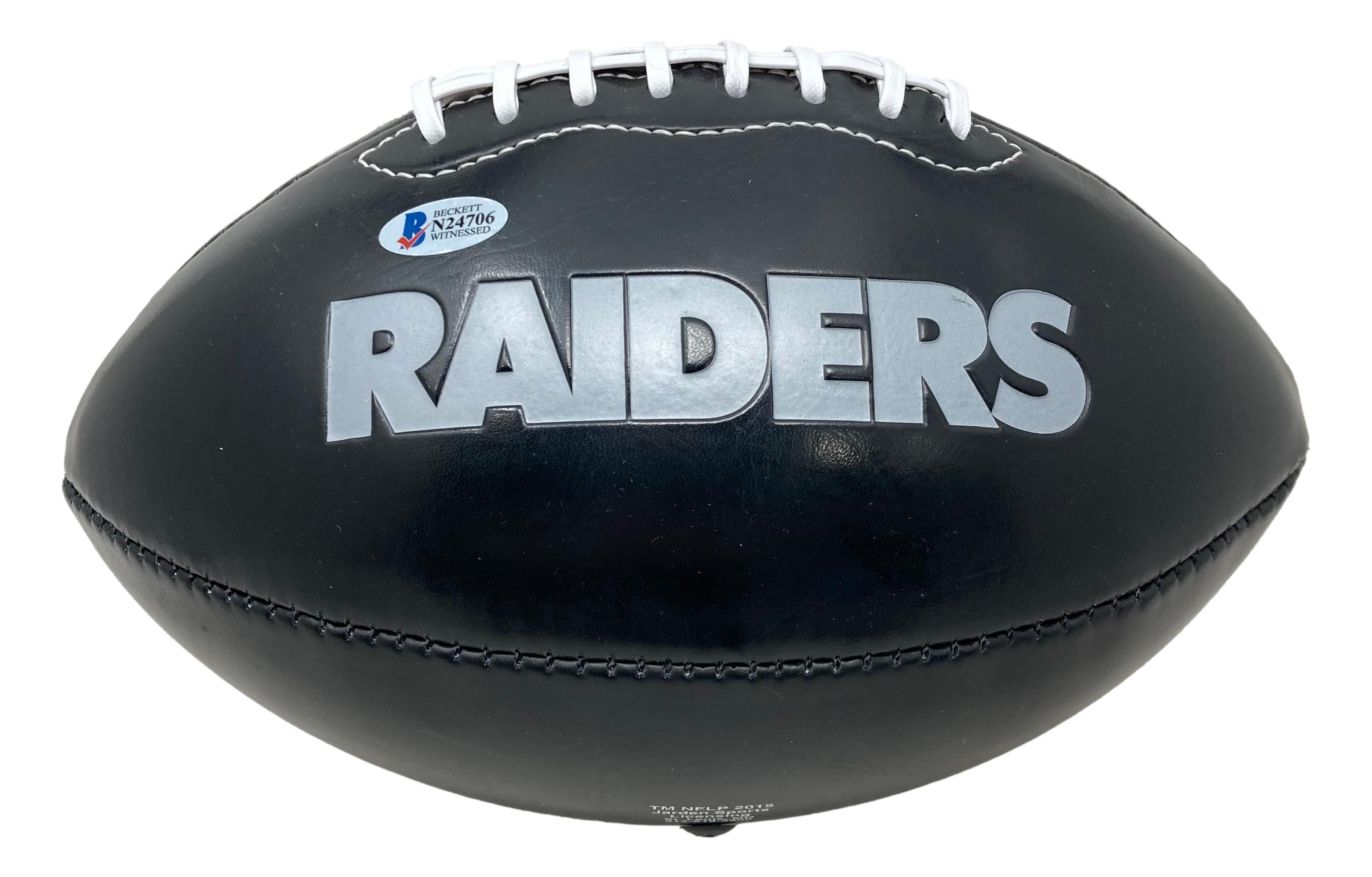 Los Angeles Raiders logo football. Hand-signed by Bo Jackson.