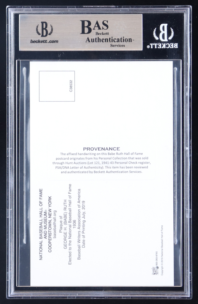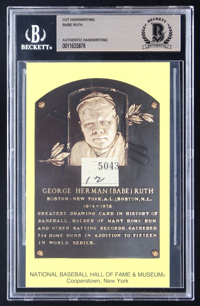 Babe Ruth Signed Cut On Hall of Fame Plaque Postcard (BAS)