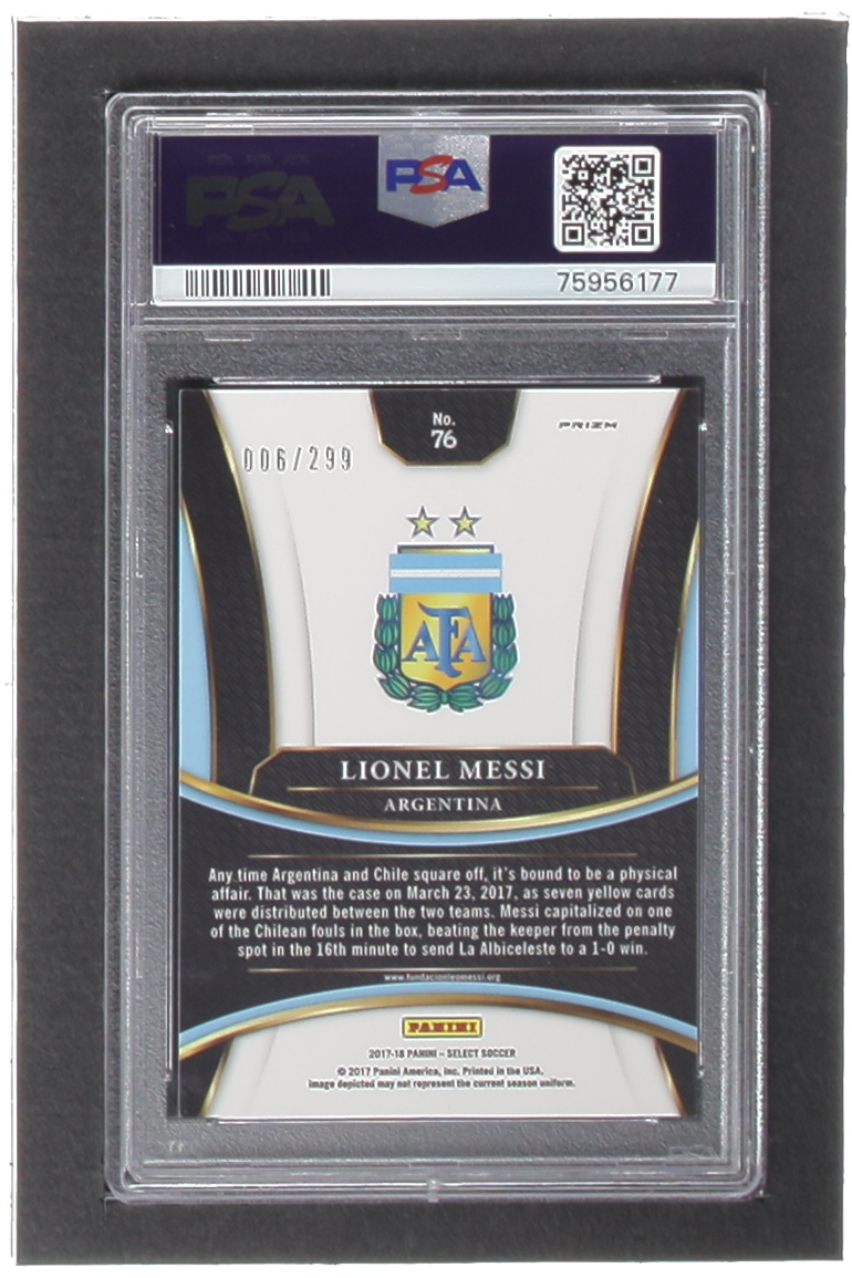 Lionel Messi 2017-18 Select Prizms Blue #76 #006/299 (PSA 9)