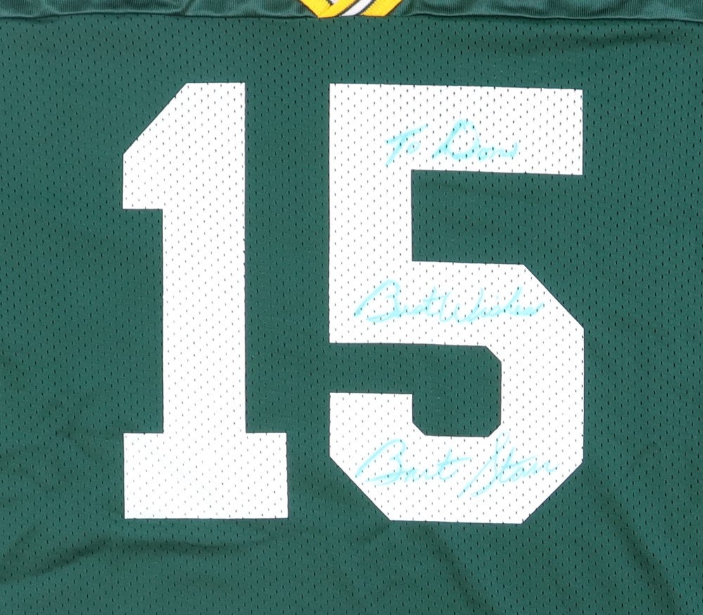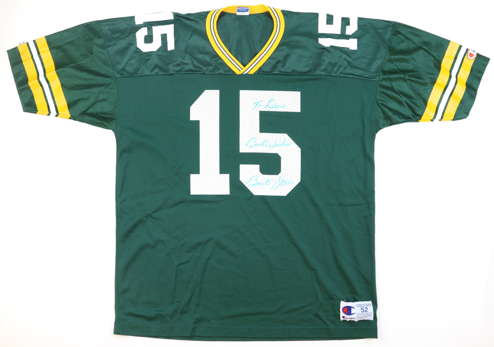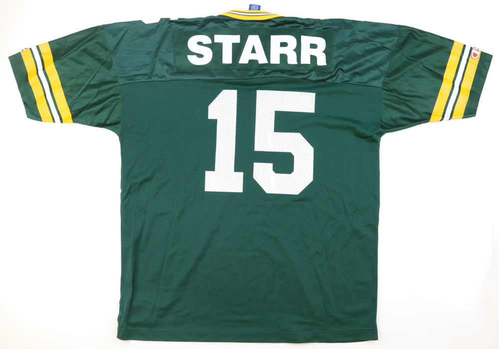 Champion jersey with everything printed on, size 52. Hand-signed and inscribed by Bart Starr (D. 2019, Green Bay Packers, HOF). Please note, the inscription has been personalized, "To Don".