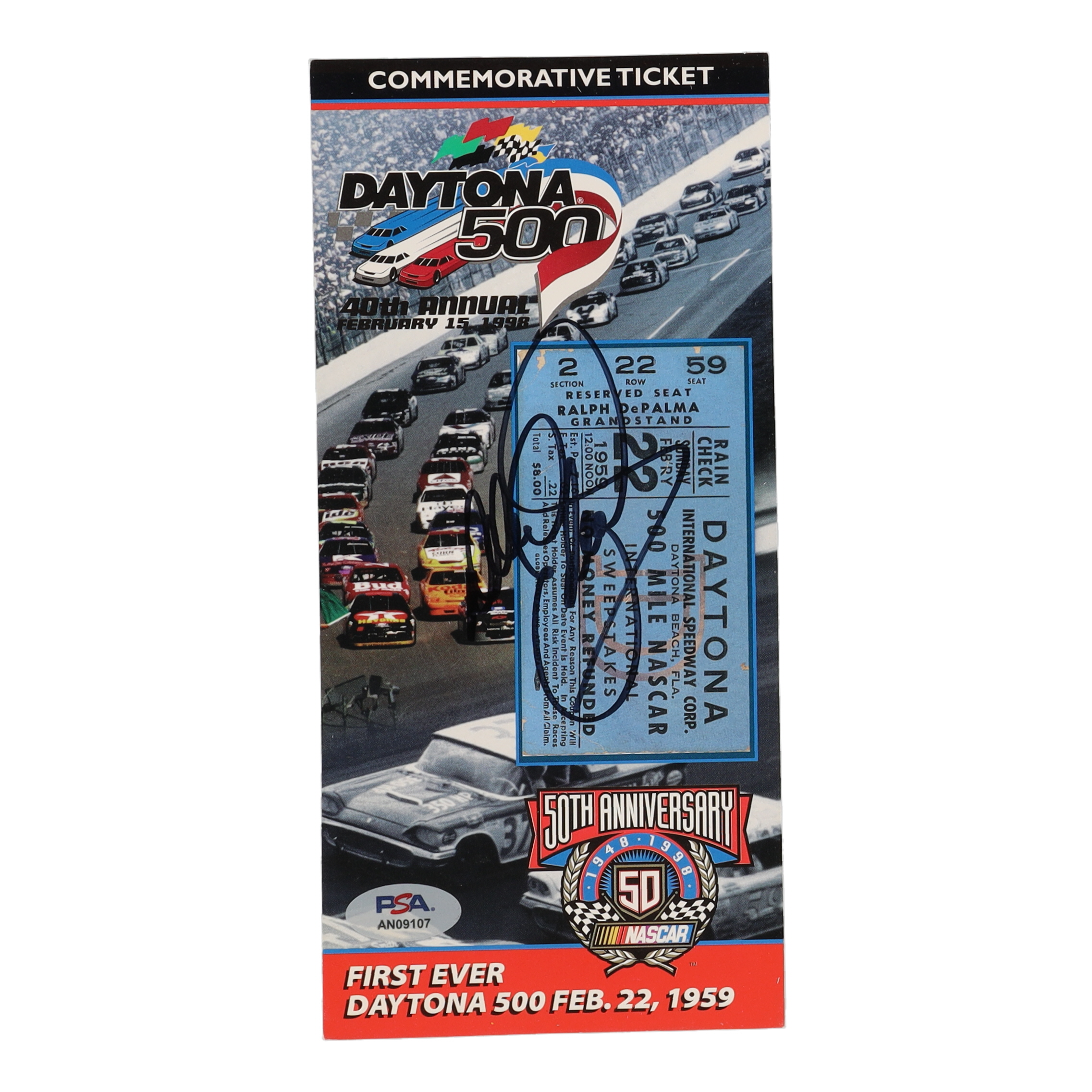 Dale Earnhardt Sr. LE Signed 1998 NASCAR Daytona 500 Commemorative Ticket #3,468/10,000 (PSA)