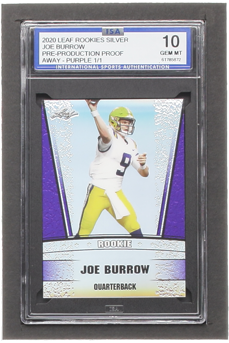 Joe Burrow 2020 Leaf Metal Special Release Rookie Silver Rainbow Purple Pre-Production #NNO #1/1 RC (ISA 10)