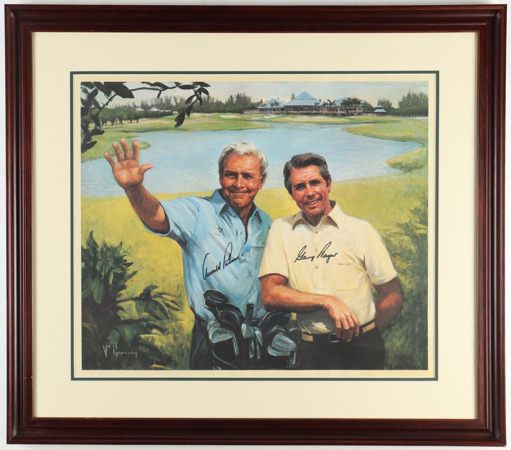 Custom frame measures 30" x 35" in size and features a photo that has been hand-signed by Arnold Palmer (D. 2016, HOF) and Gary Player (HOF).