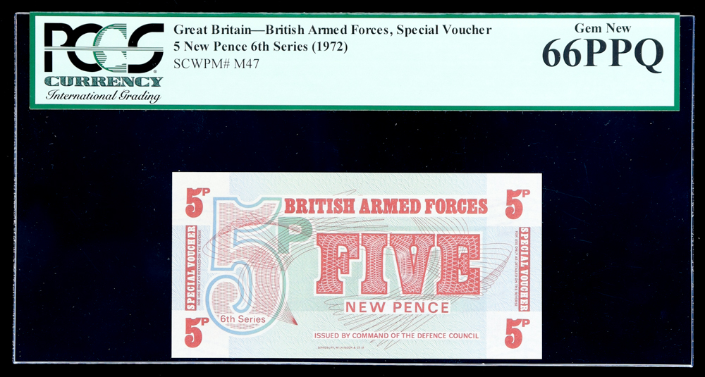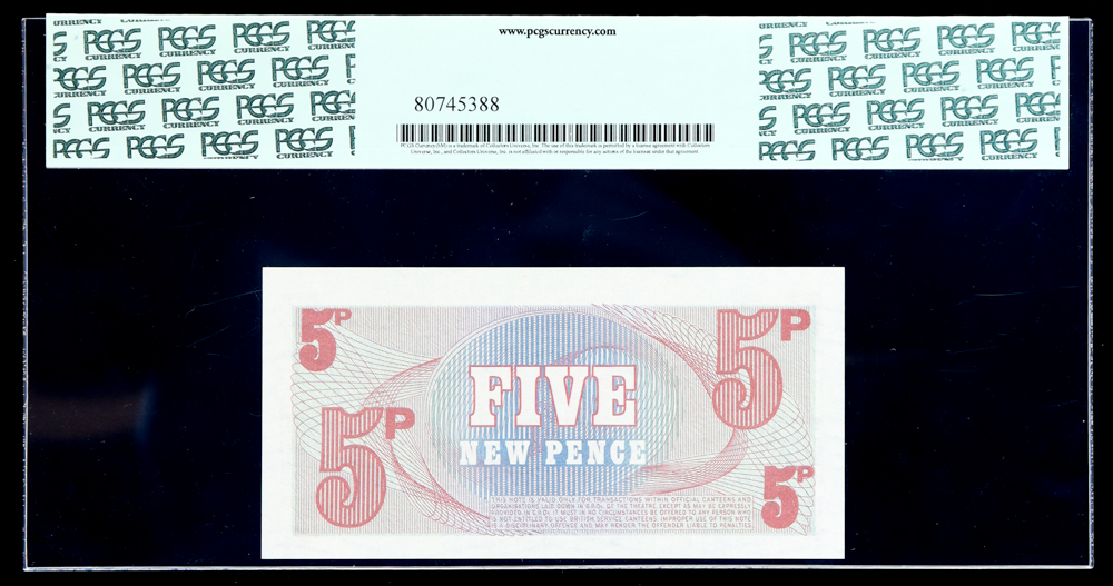 1972 Great Britain 5 New Pence British Armed Forces Special Voucher (PCGS Gem New 66PPQ)