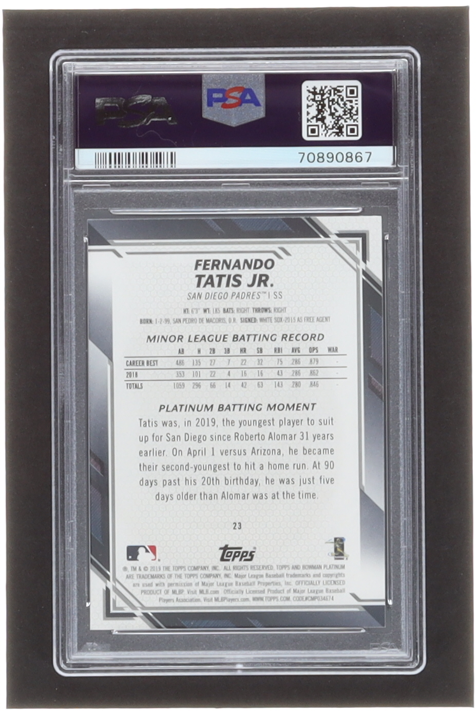 Fernando Tatis Jr. 2019 Bowman Platinum Base Set Variations #23 RC (PSA 10)