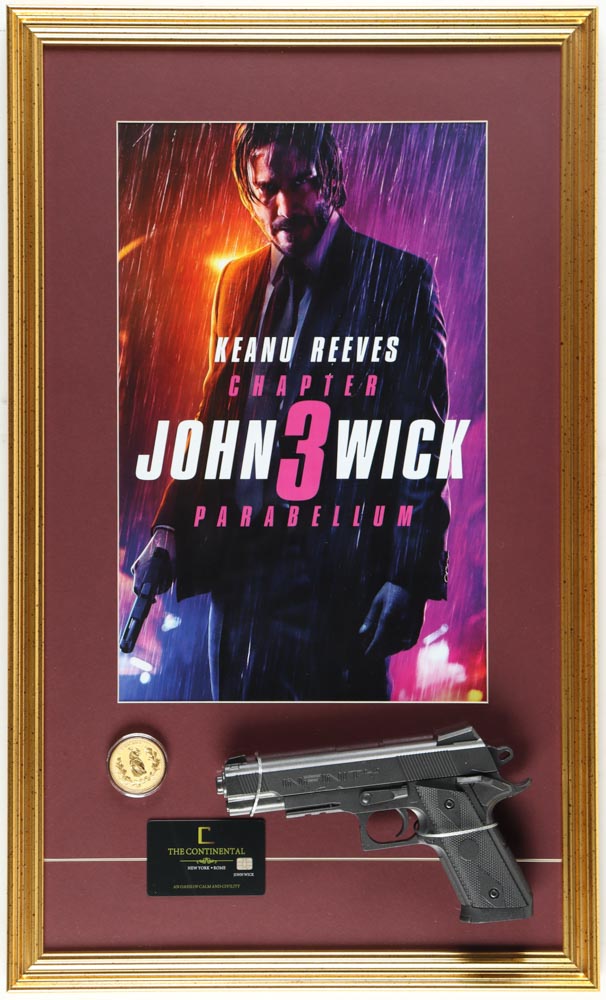 "John Wick Chapter 3: Parabellum" Custom Framed Movie Poster Display with Replica Hotel Keycard, Prop Pistol & Adjudicator Coin