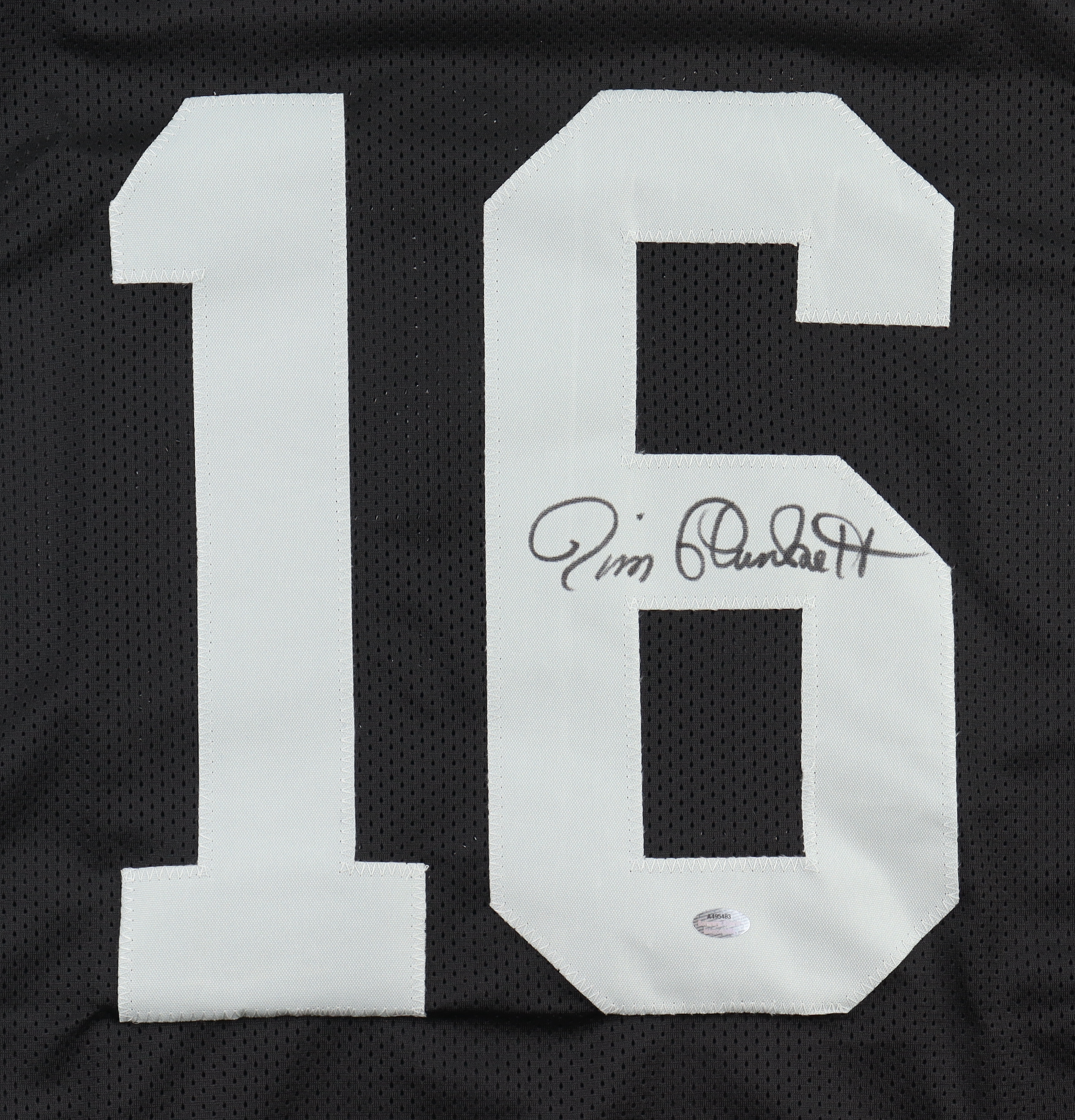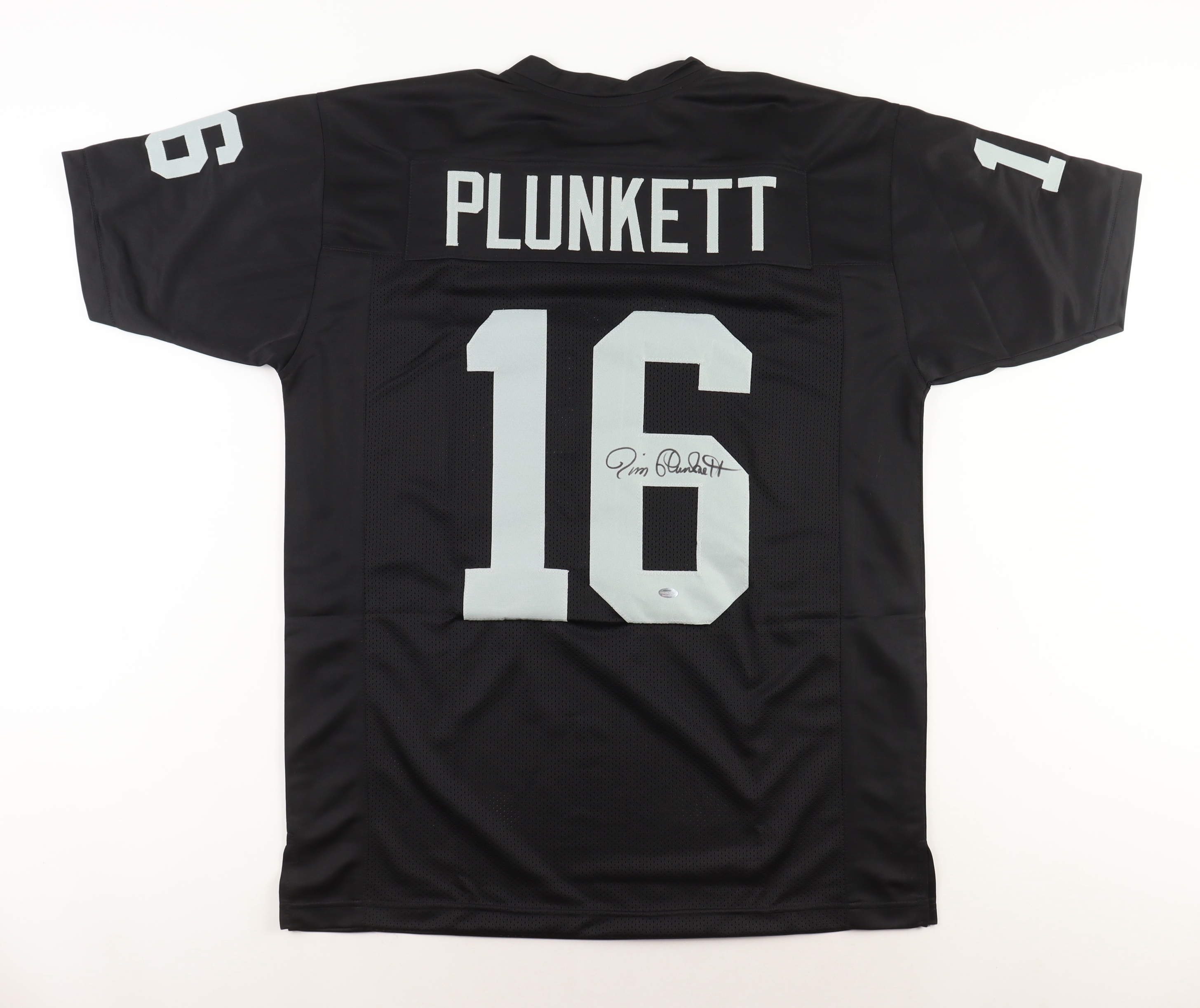 Custom jersey everything is sewn on, size XL. Hand-signed by Jim Plunkett.