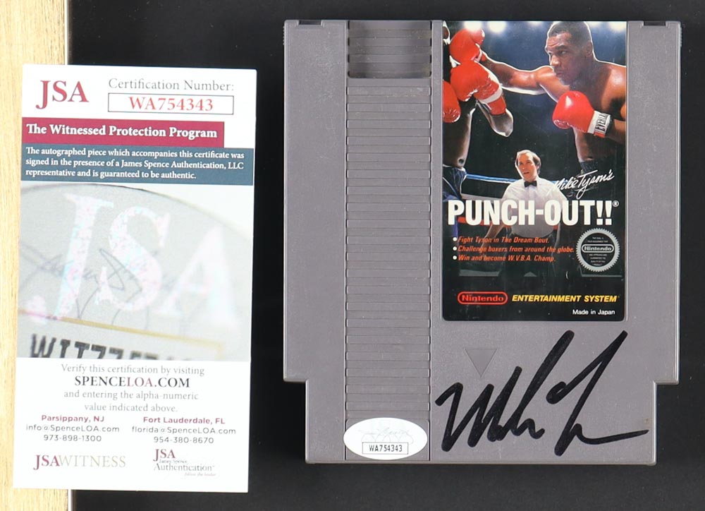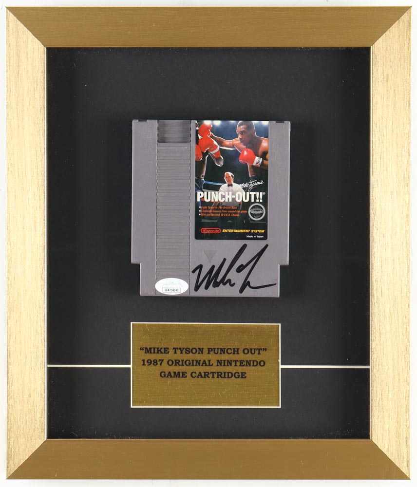 Custom frame measures approximately 12" x 14" in size and and features a "Punch-Out!!" Nintendo game cartridge that has been hand-signed by Mike Tyson (HOF).
