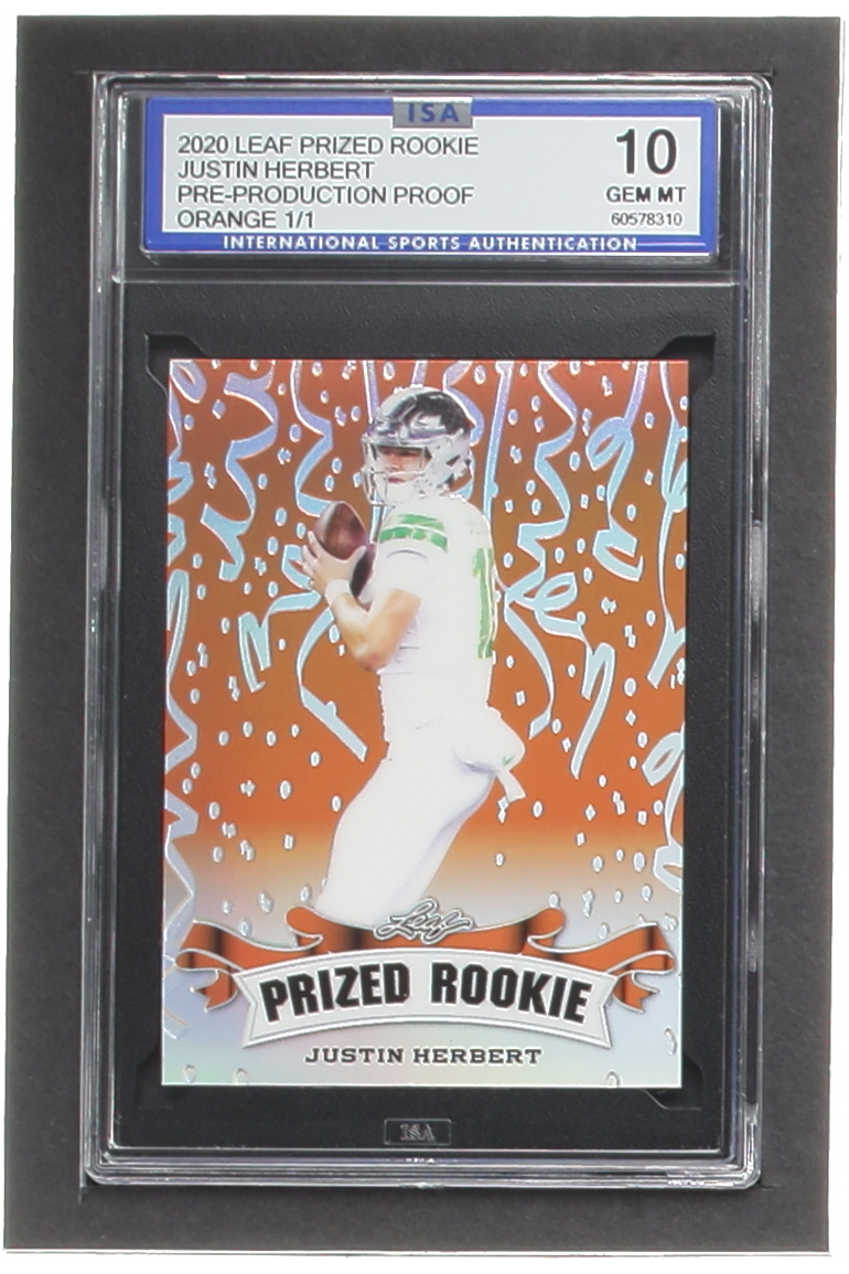 Justin Herbert 2020 Leaf Metal Special Release Prized Rookie Rainbow Orange Pre-Production #NNO #1/1 RC (ISA 10)
