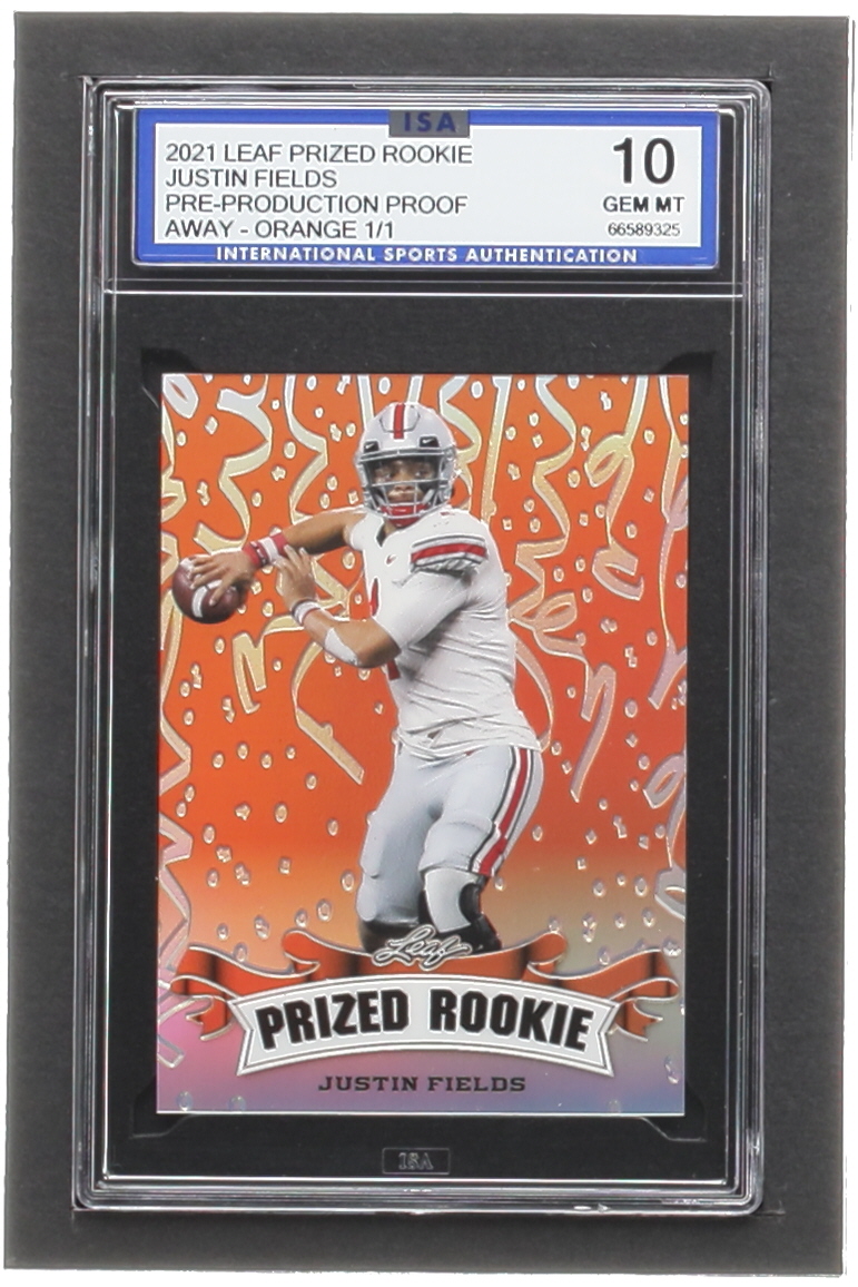 Justin Fields 2021 Leaf Metal Special Release Prized Rookie Rainbow Orange Pre-Production #NNO #1/1 RC (ISA 10)