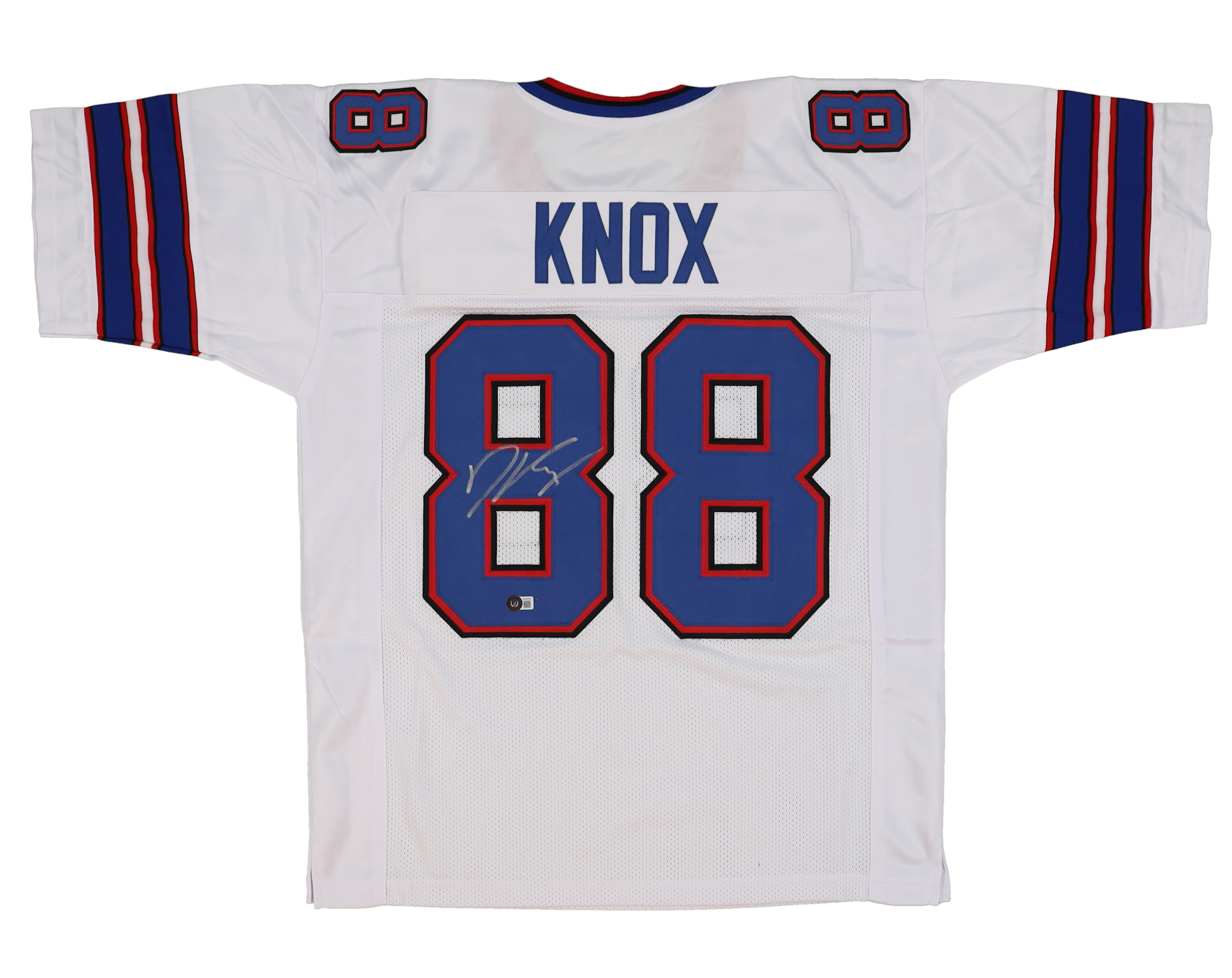Custom jersey with everything sewn on, size XL. Jersey has been hand-signed by Dawson Knox.
