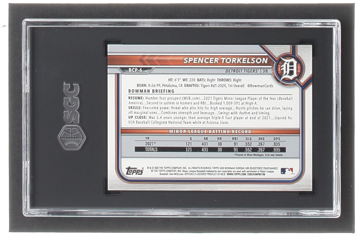 Spencer Torkelson 2022 Bowman Chrome Prospects Aqua Refractors #BCP6 #9/125 (SGC 10)