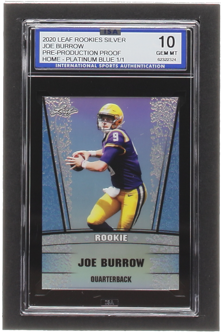 Joe Burrow 2020 Leaf Metal Special Release Rookie Silver Rainbow Platinum Blue Pre-Production #NNO #1/1 RC (ISA 10)