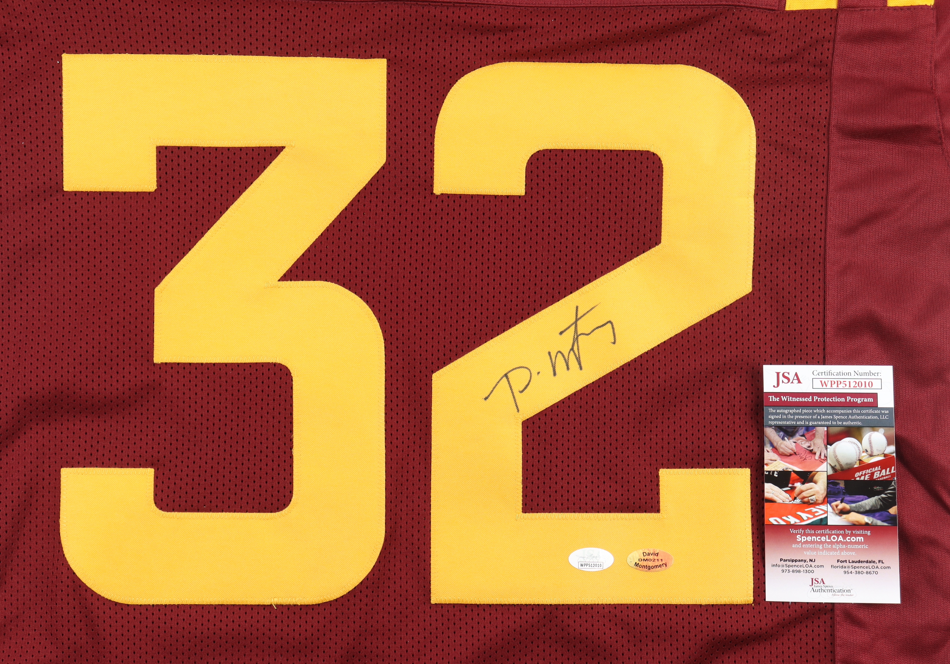 The autograph(s) includes an official James Spence Authentication (JSA) hologram and matching COA as well as an official David Montgomery player hologram for authenticity purposes. The signing of this item was witnessed by JSA.